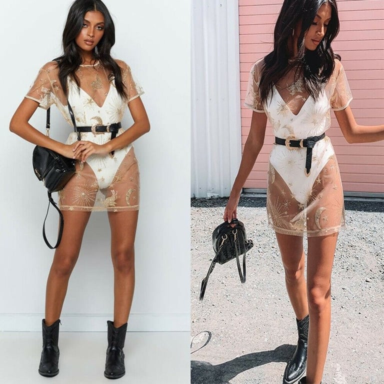 Original sheer mini dress with short sleeves.
