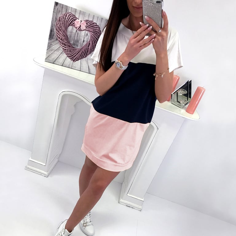 Comfortable women's dress. Simple cut. In a provocative mini length.