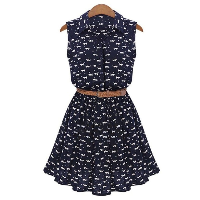 Women's sleeveless dress in a shirt style.