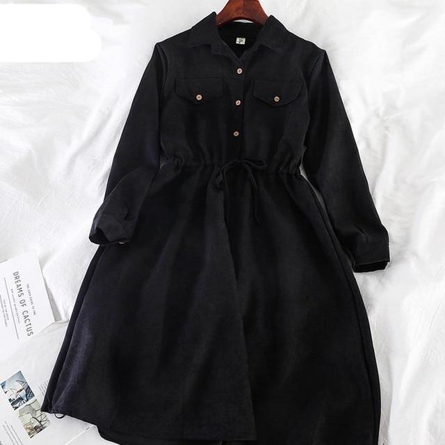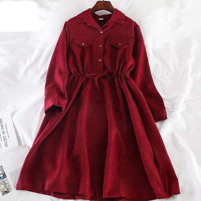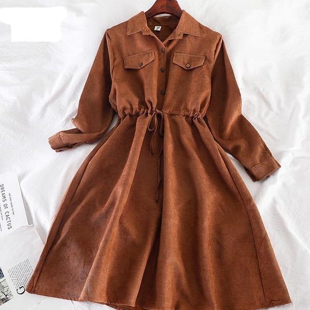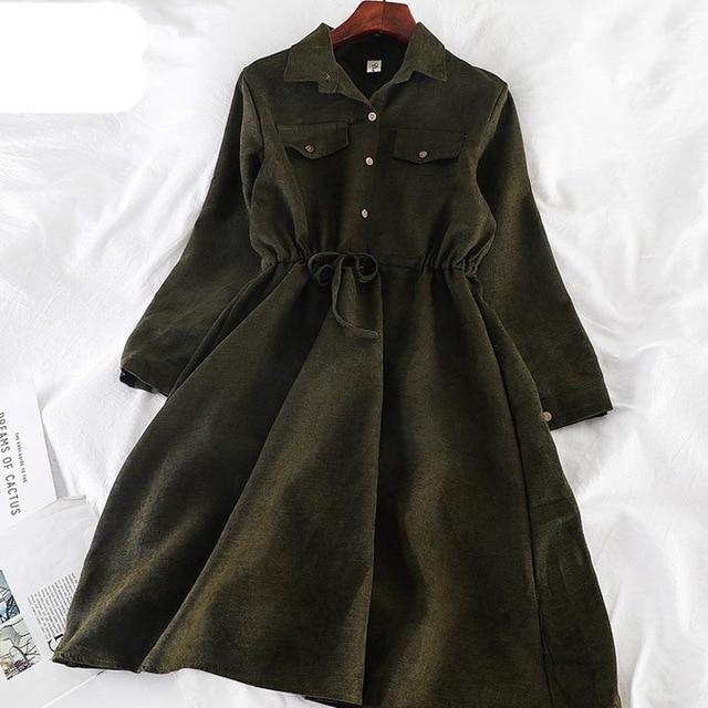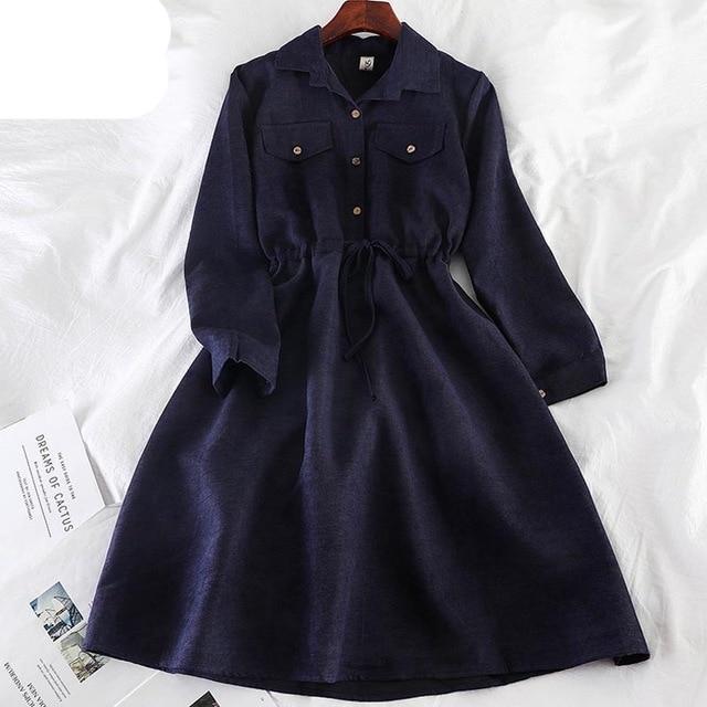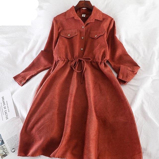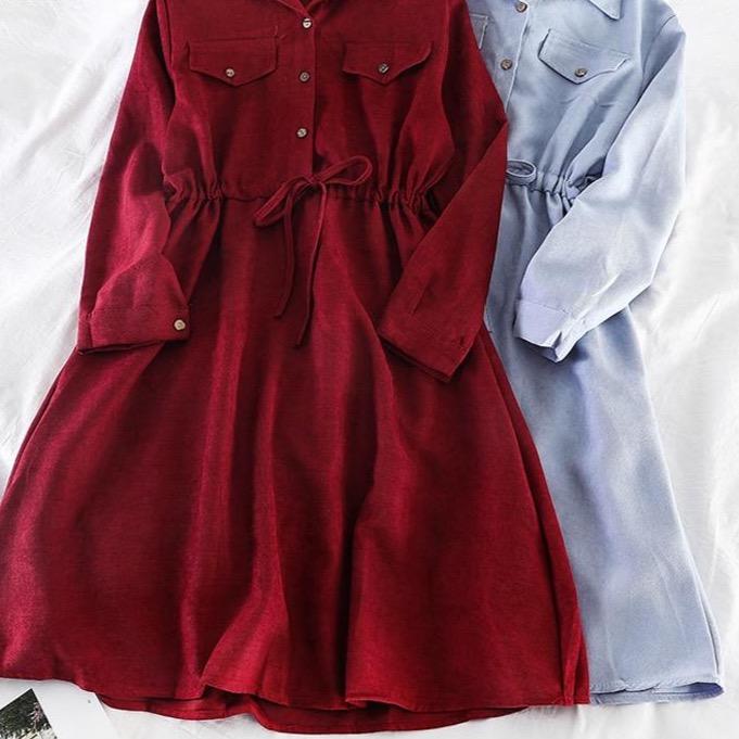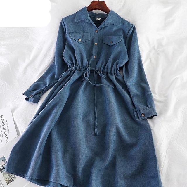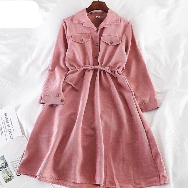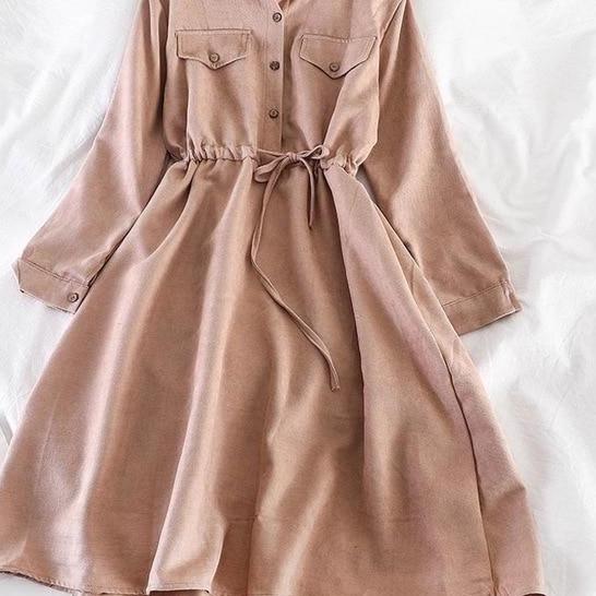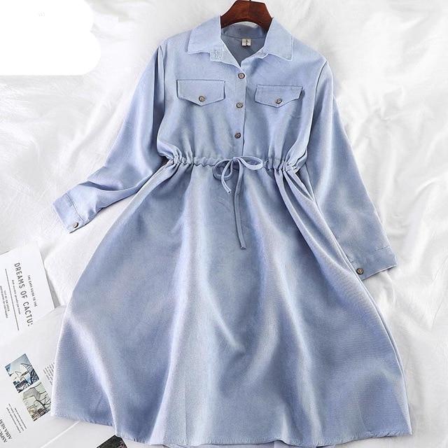 Cotton shirt dress with long sleeves and a belt. The dress is available in several colours.