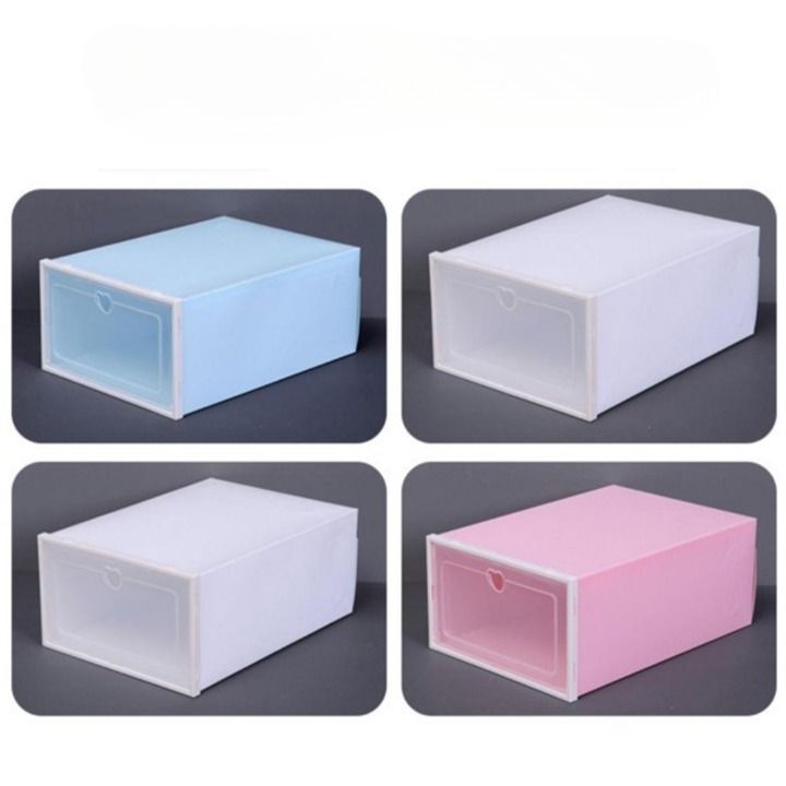 A practical box for storing shoes. The boxes are sturdy with the option to close.