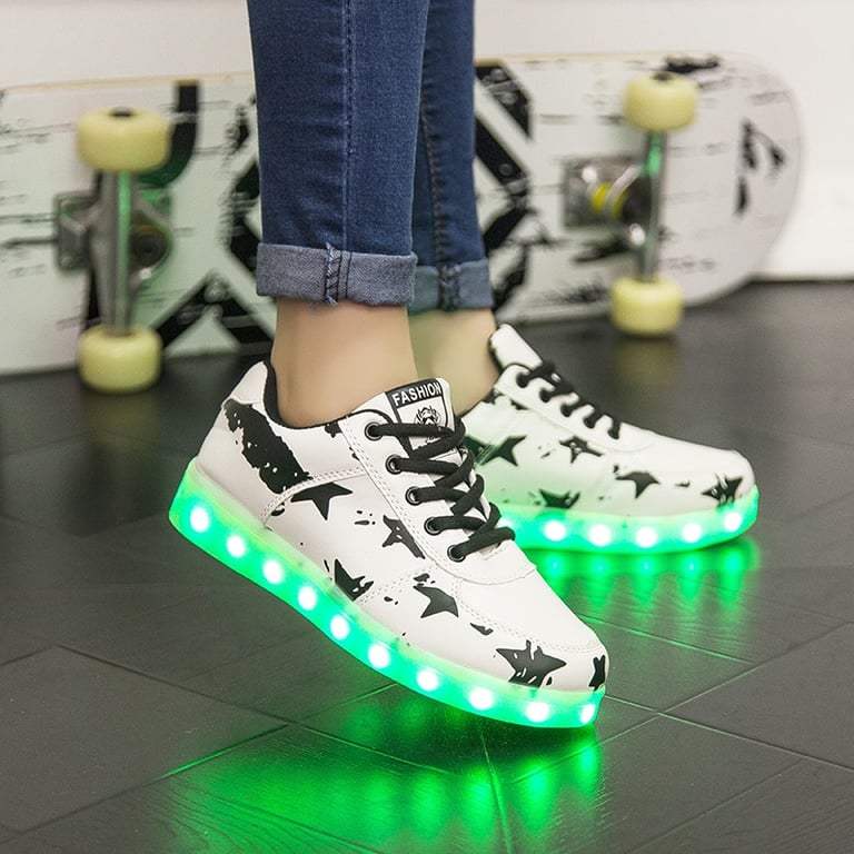 Make an impression on those around you with these glowing shoes. The shoes feature a star print and the battery charges via USB cable..