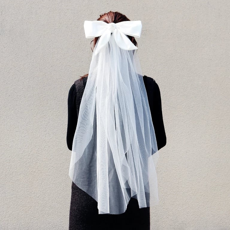Short bridal veil with a bow.