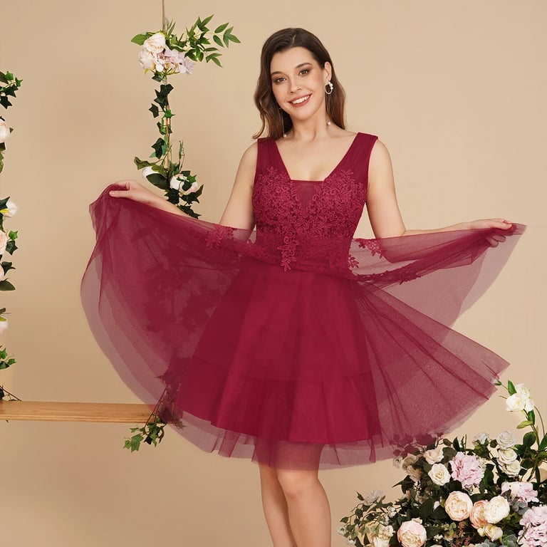 Short bridesmaid dress for a wedding.