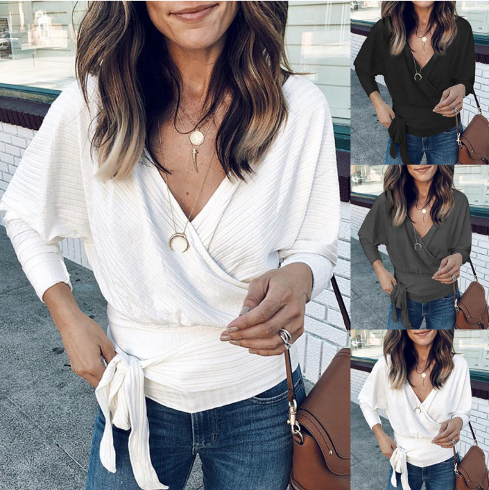 Short knitted fine women's sweater with a bow.