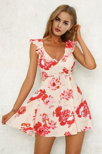 The dress features a frill around the neckline and is a great piece for summer.