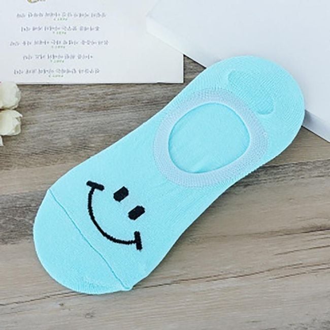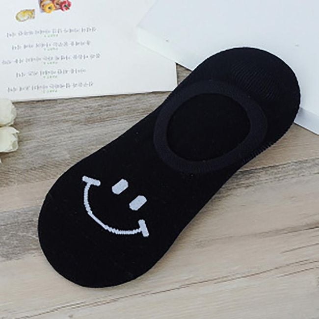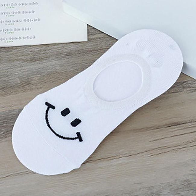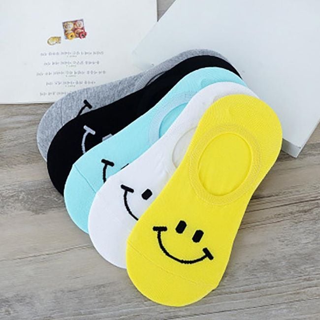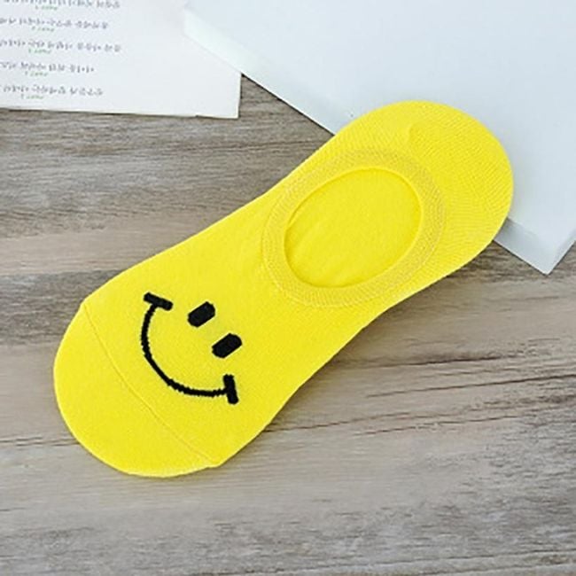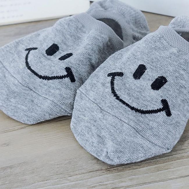 Short unisex socks are suitable for both women and men. A smiling emoji is depicted on the toe.
