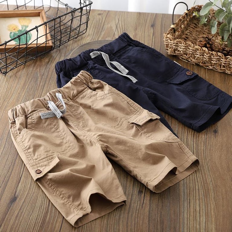 Cotton shorts with pockets for boys. Available in brown and blue. Very comfortable.