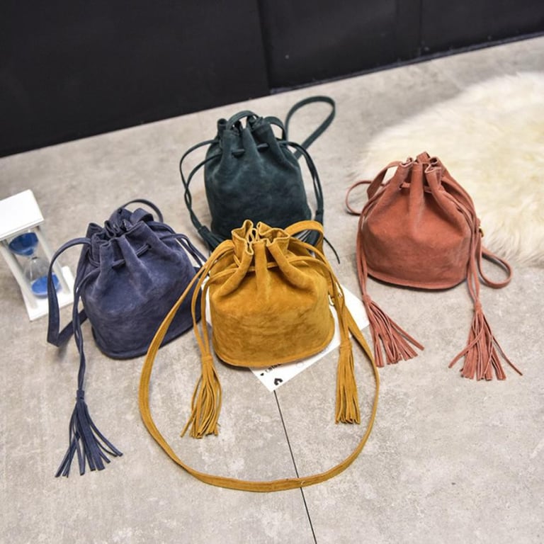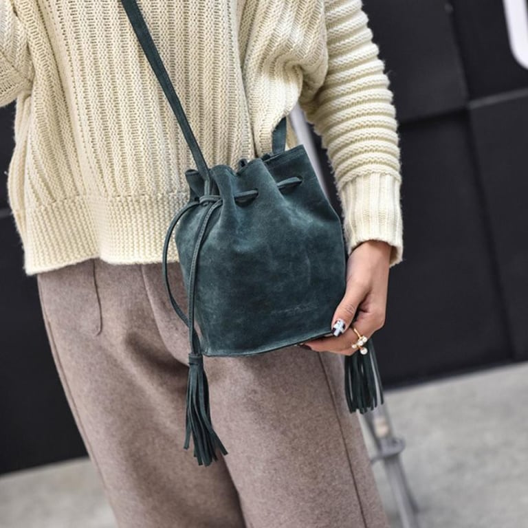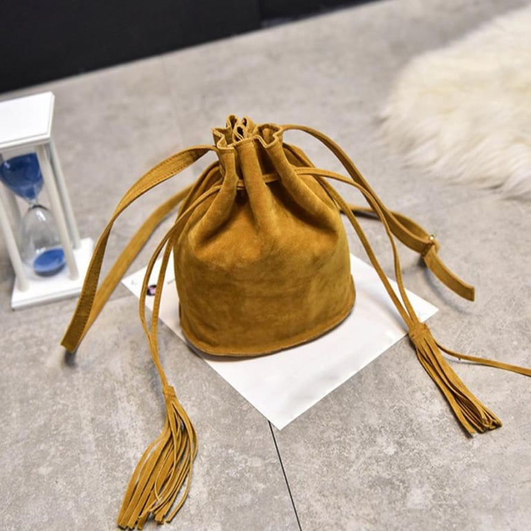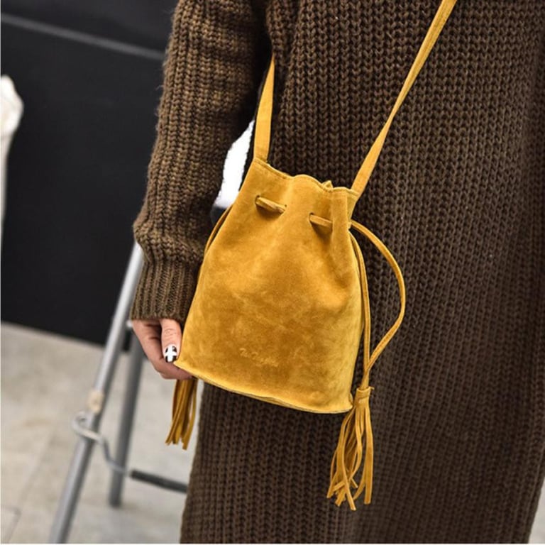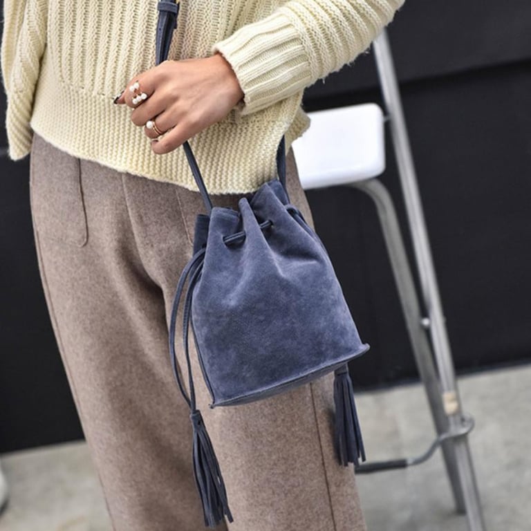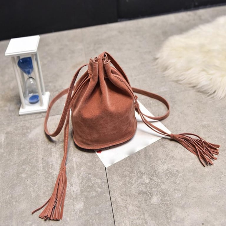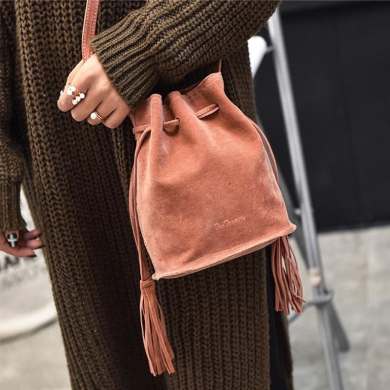 Small handbag with a long strap in a suede look.