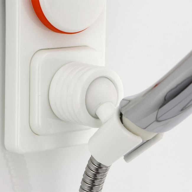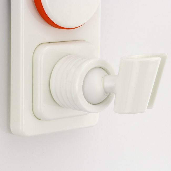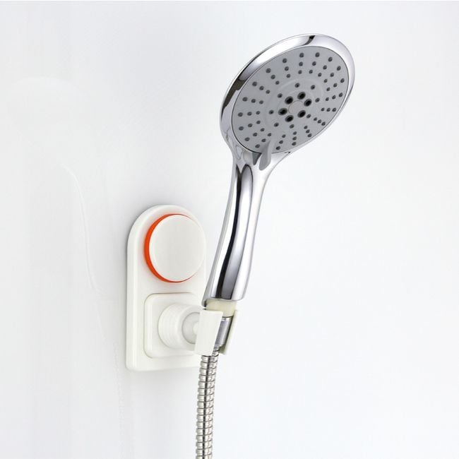 The holder is suitable for a shower head, it rotates 360 °C and has small suction cups on the back.