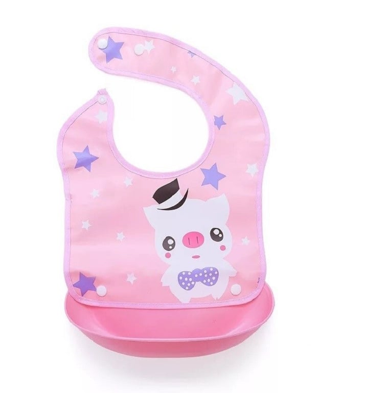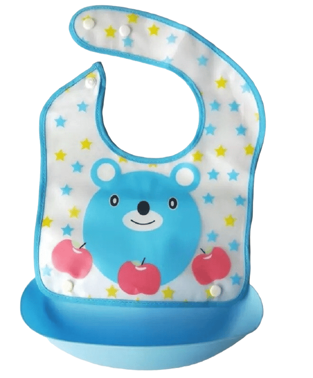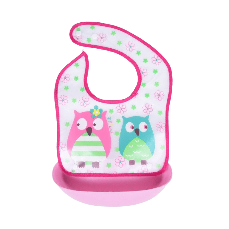 This bib will help keep your child clean. It features a silicone pocket that catches falling food. Thanks to the adjustable fastening, it will fit comfortably even the smallest ones. The bib is suitable for home use as well as for travel.