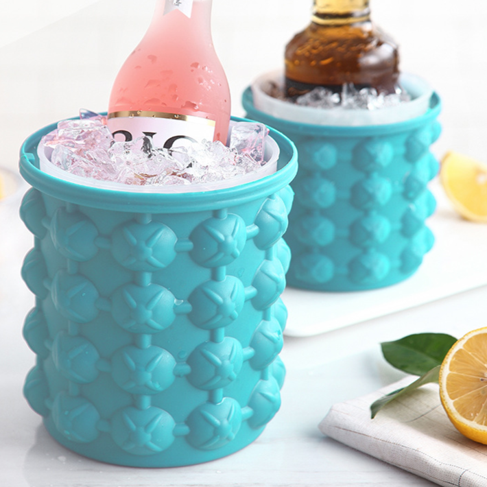 Silicone ice cube tray. The silicone ice cube tray prepares ice cubes, stores them, and keeps them cool! This freezing box does it all. With its unique two-chamber system, it can hold up to 120 ice cubes. It also serves as a holder and cooler for drinks – perfect for parties and barbecues.