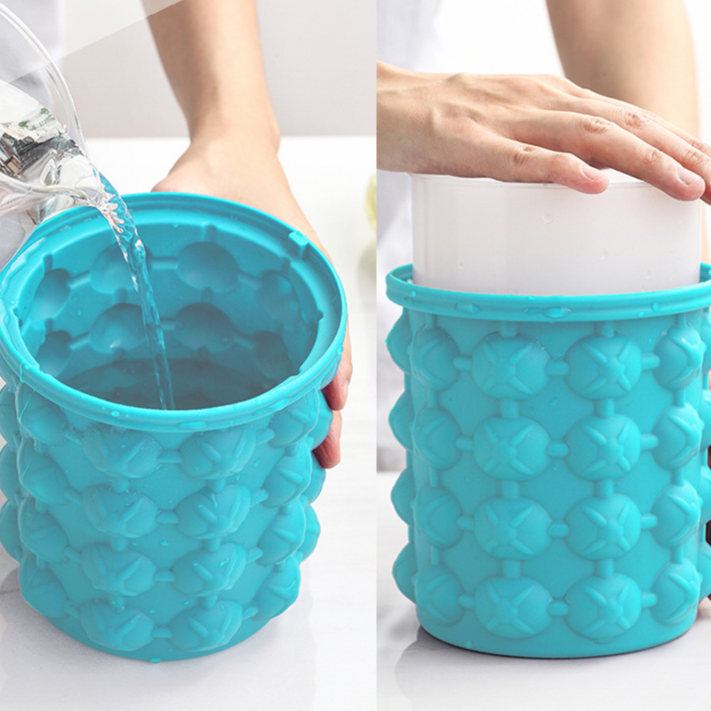 Fill the space between the silicone and the plastic container with water and leave it in the freezer until frozen. The ice cubes can be easily released by squeezing the entire container. The high-quality, health-friendly material allows for quick release of the ice cubes from the walls.