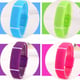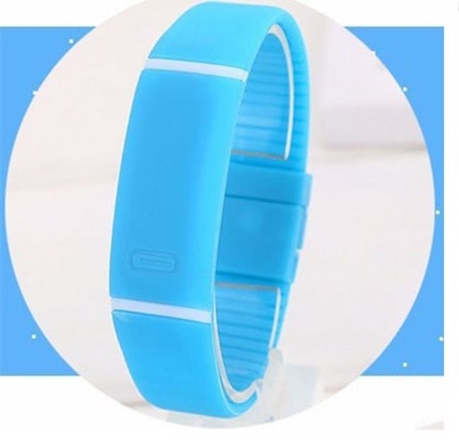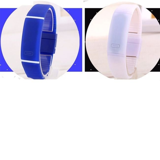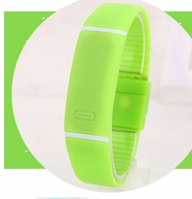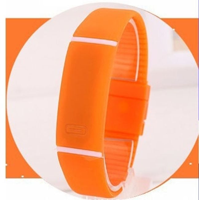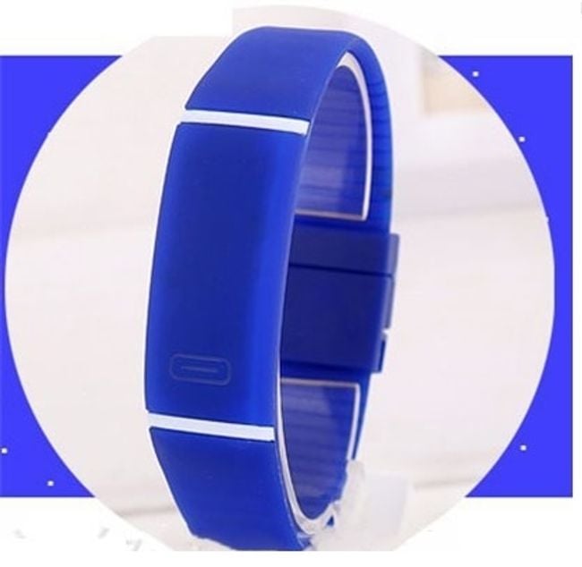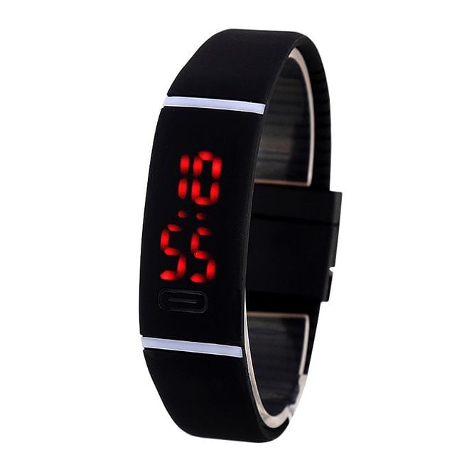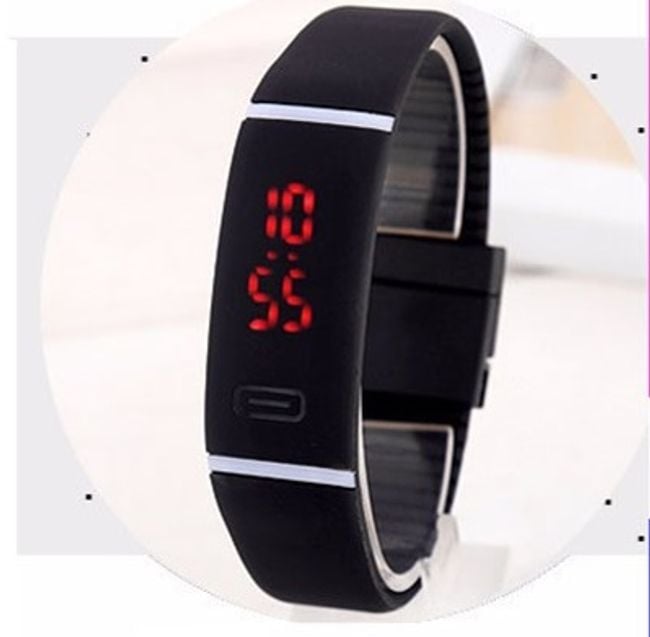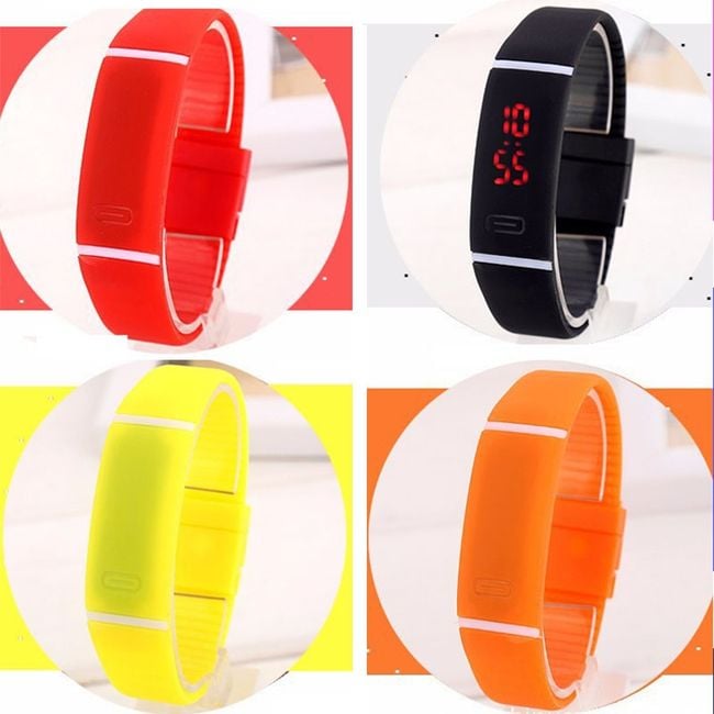 With these watches, you can go running or exercising. The watches are digital and have two white stripes around the dial. If you want to shorten the watch, simply cut a piece off the strap. There are several vibrant colours to choose from. The time lights up for just a few seconds after pressing the button.