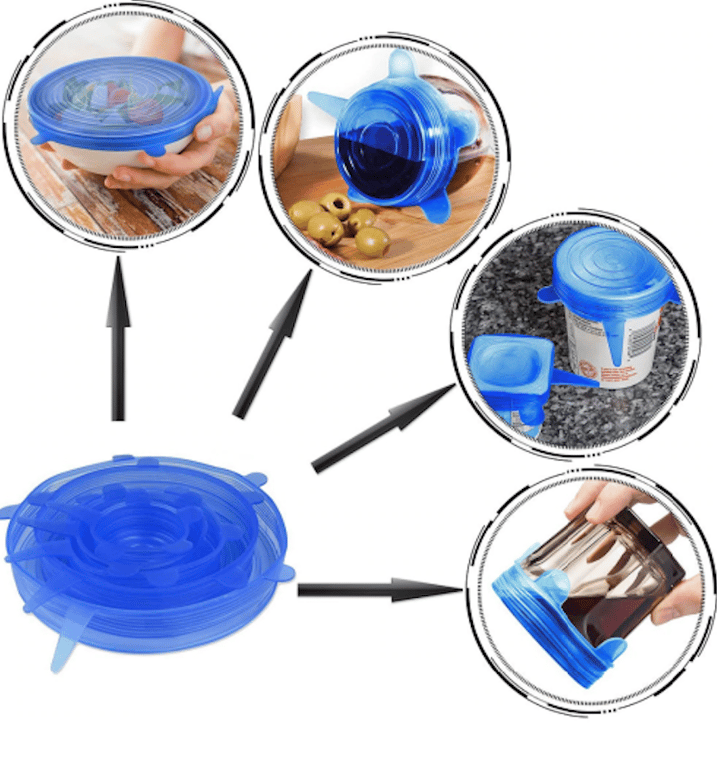 6 covers with diameters of approx. 6.5 cm, 9.5 cm, 11.5 cm, 14.5 cm, 16.5 cm, 21 cm