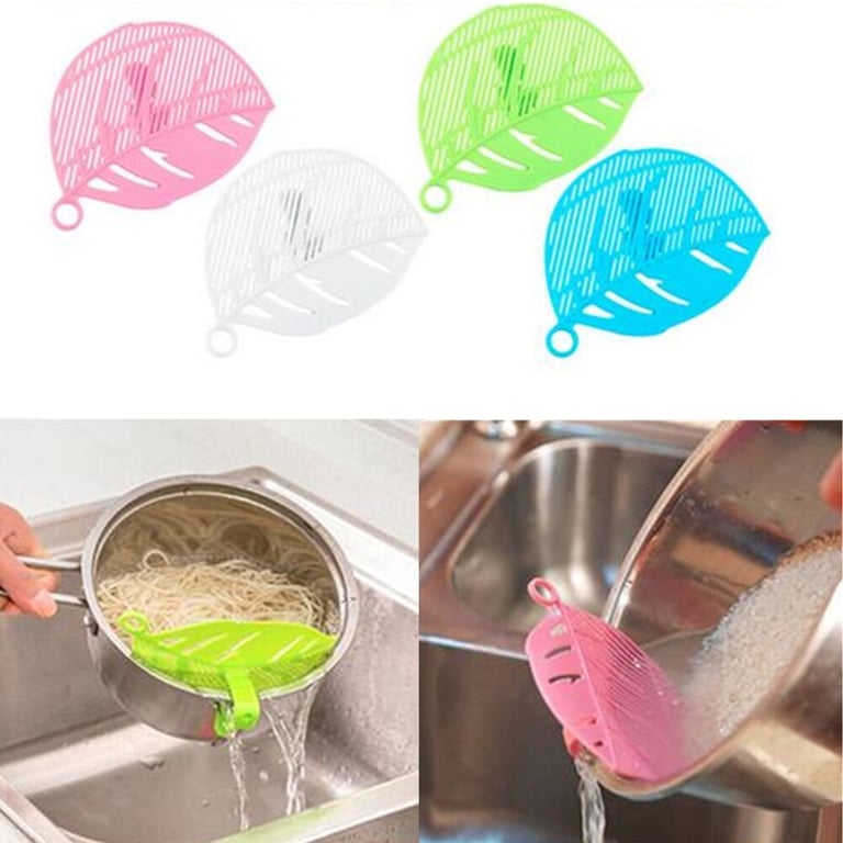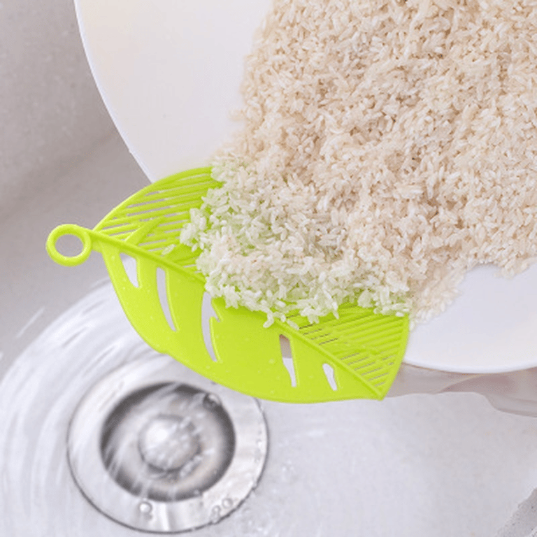 A handy leaf-shaped strainer that fits into any kitchen. It is durable and practical. Simply attach it to a pot or bowl and drain the water. It can be used for washing rice, beans, grapes, or for draining spaghetti and pasta.