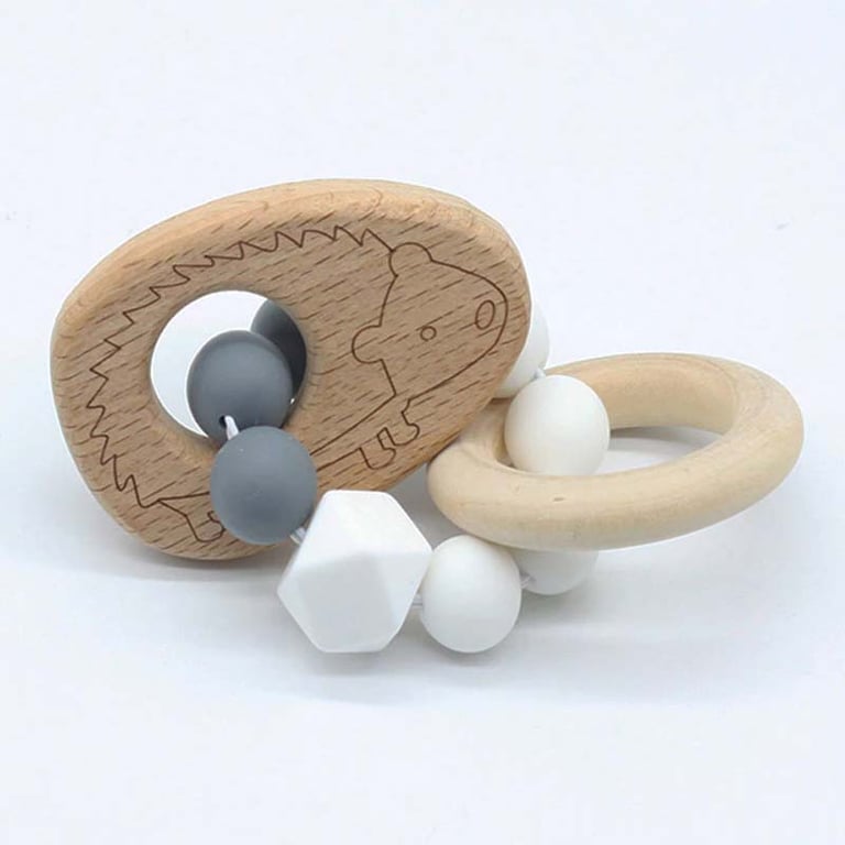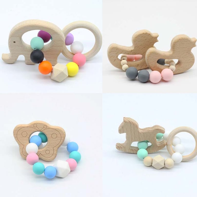 Children's teether made from special silicone, which helps not only during the teething phase. It is designed as a bracelet so that the teether doesn't get lost easily! Plus, it features a beautiful wooden decoration.