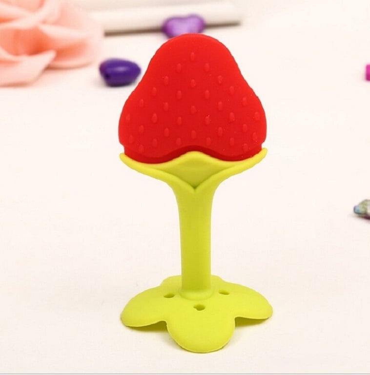 Children's teething toy in the shape of fruit made from very high-quality material. It helps children during the growth of their first teeth.