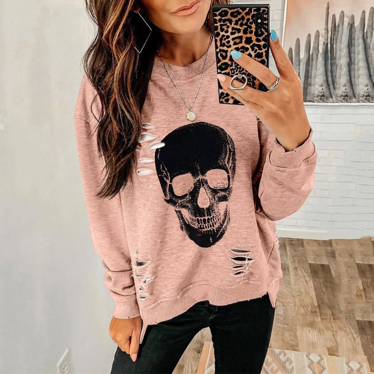Women's pullover sweatshirt with a round neckline and long sleeves. Colourful print on the front. Decorative perforation.