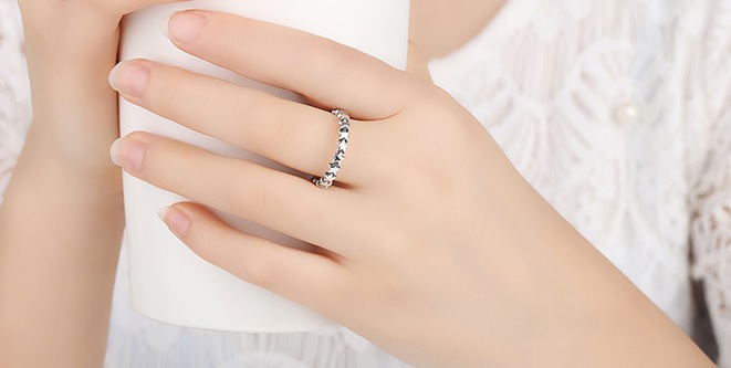 Very elegant silver ring with tiny stars will stand out on any young lady, woman, or dame.