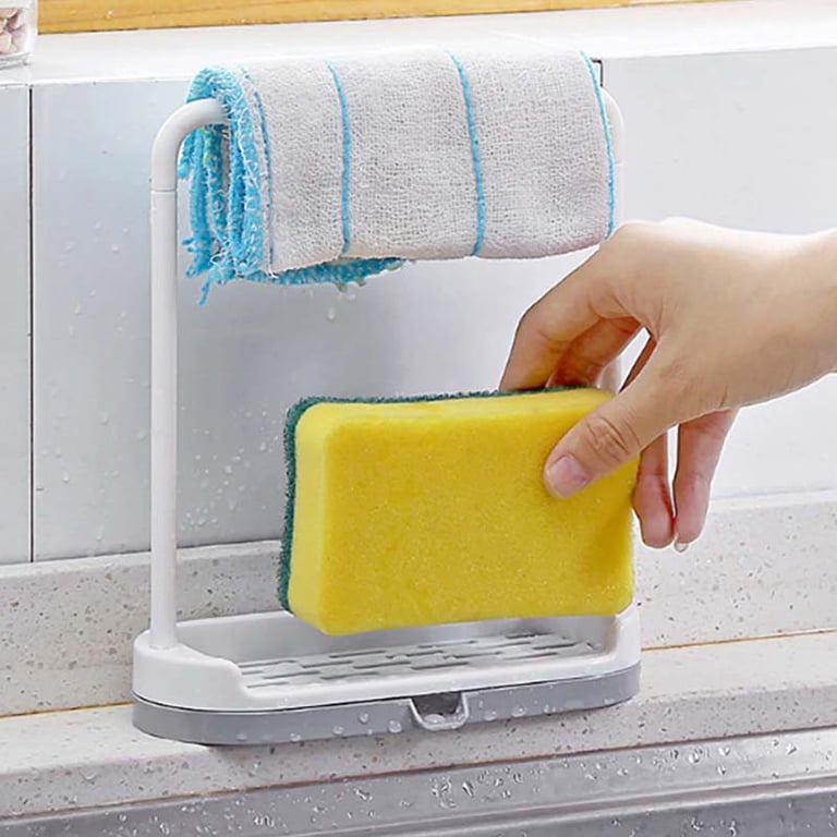 A handy kitchen organiser that you will primarily use by the sink. The sponge drainer, or soap holder, is practical because nothing is left lying directly in the sink. The space for the cloth is also practical as it has a better chance of drying.