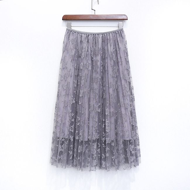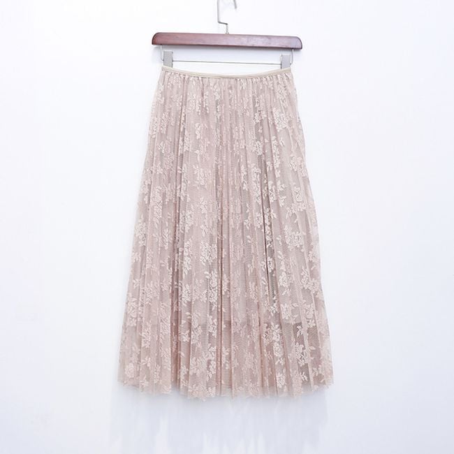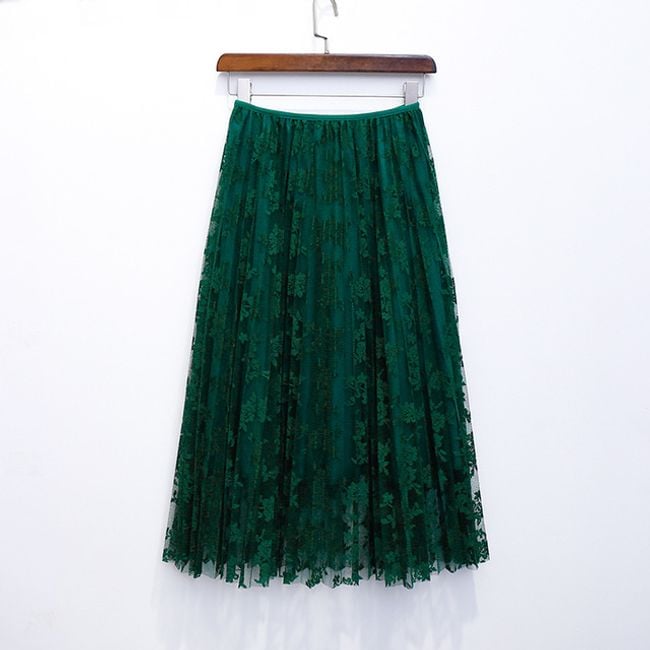 The skirt has a high waist, is pleated, and is suitable for social events.