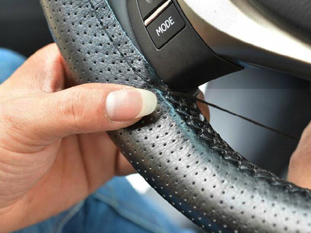 The leatherette steering wheel cover can be customised according to your needs based on the size of the steering wheel. Available in several colours.