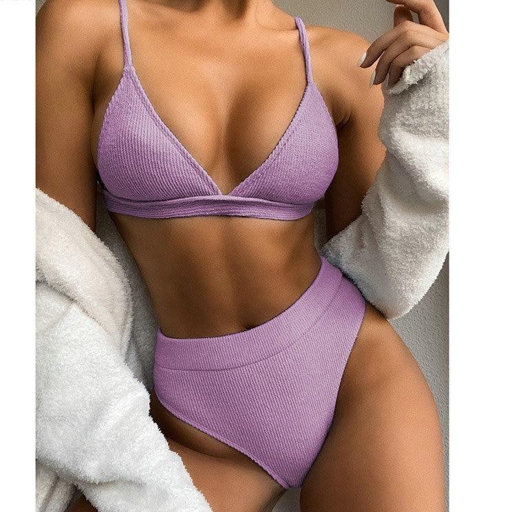 Simple two-piece women's swimsuit with high-waisted bottoms. Available in several great colours. The swimsuit is made of spandex and polyester.