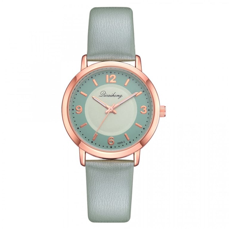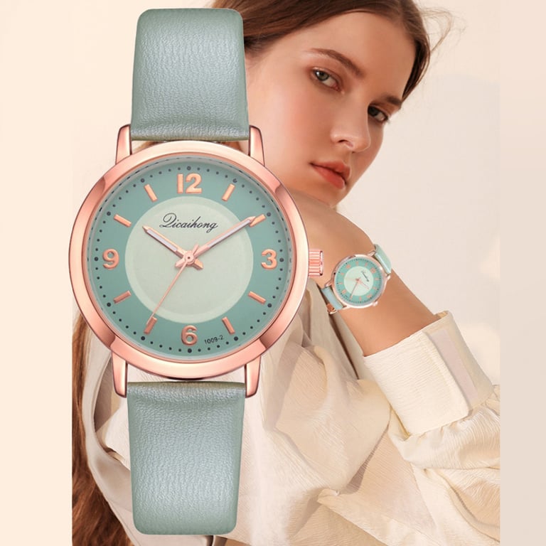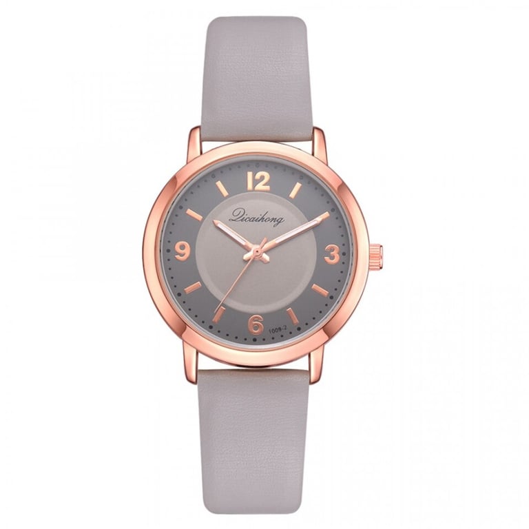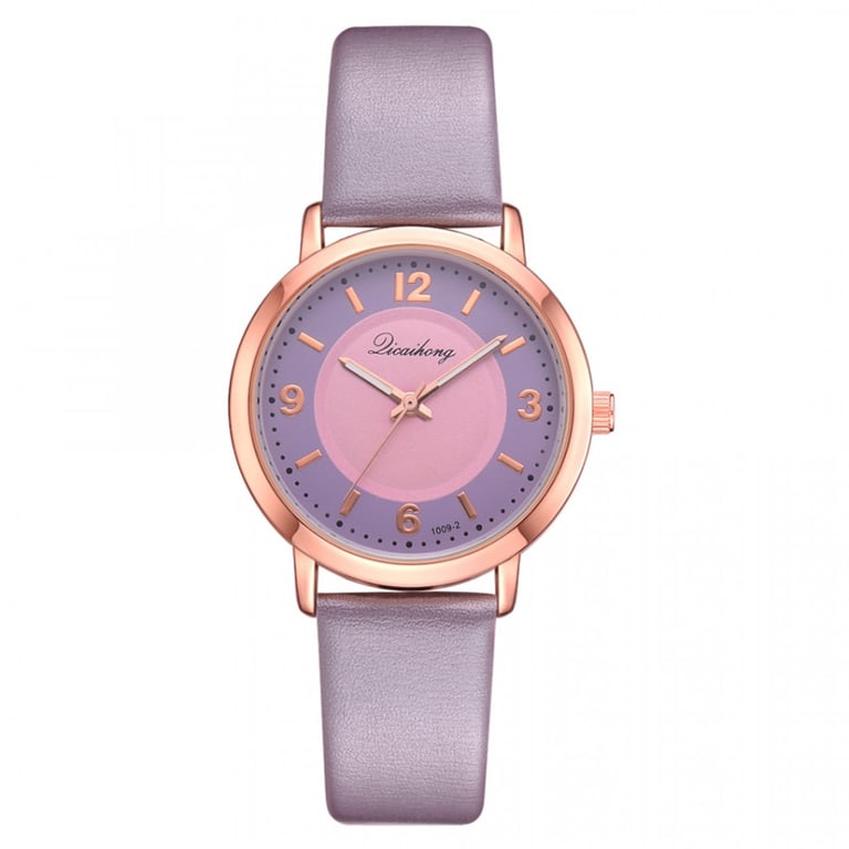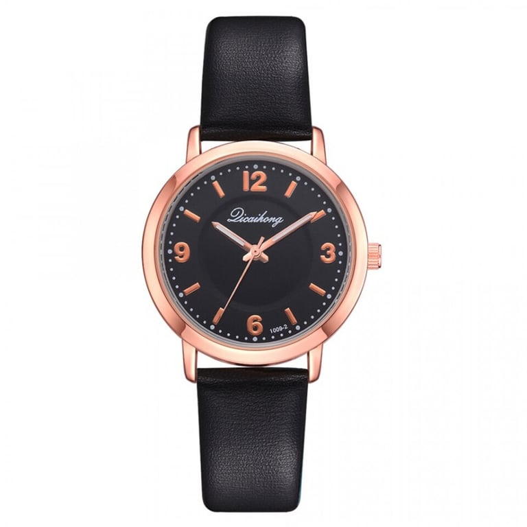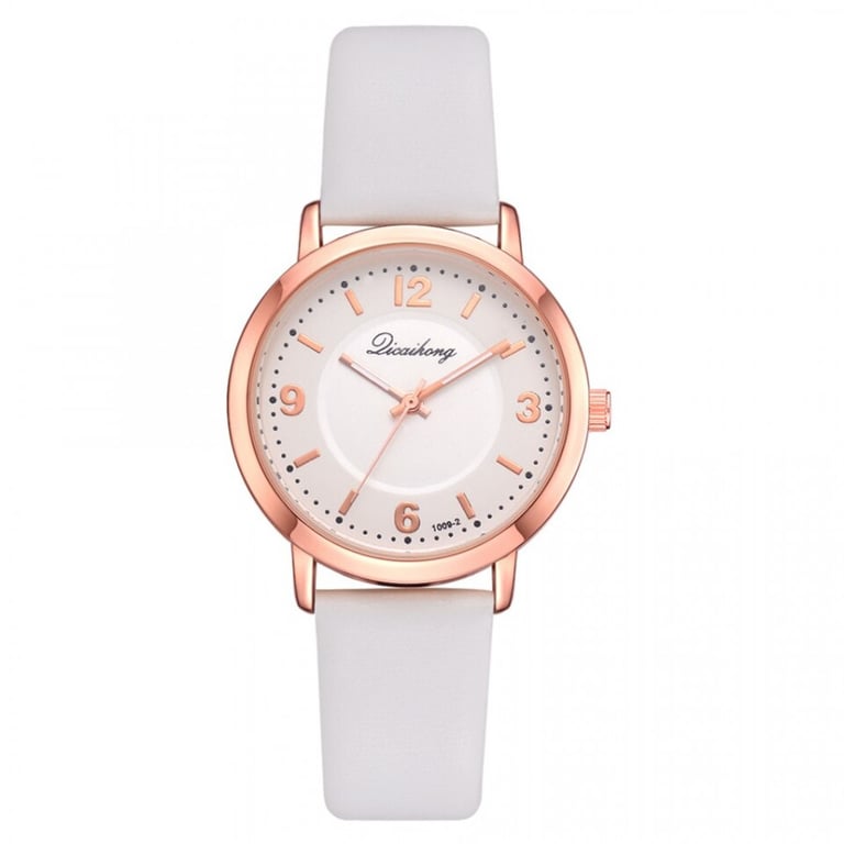 Women's watch with an adjustable faux leather strap. Numbered dial in a metal frame. Available in multiple colour options.