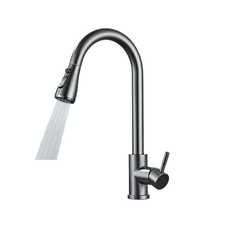 This kitchen tap will give your kitchen a modern look. The sink tap features an elegant design with a pull-out spout that offers 2 types of flow – a classic stream and a spray. The lever control makes it easy to adjust the temperature and flow. It is also equipped with a button to stop the water.