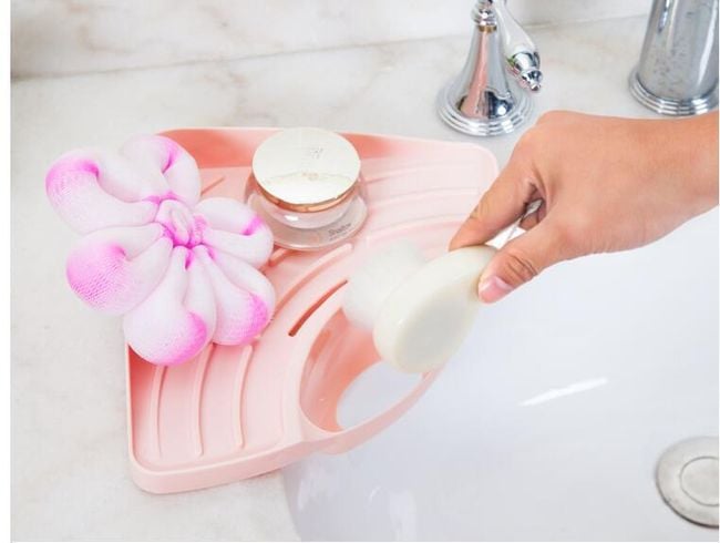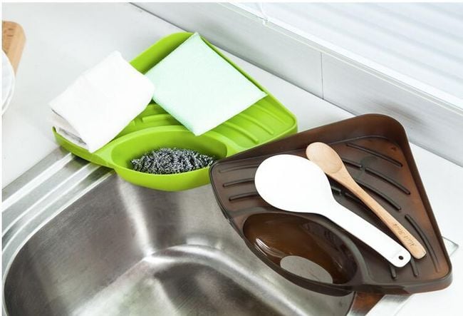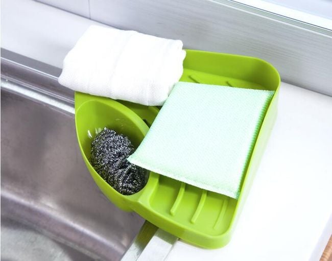 Practical corner organiser for the kitchen sink, which you can use for a sponge and washing-up liquid. Available in 4 colour variants.