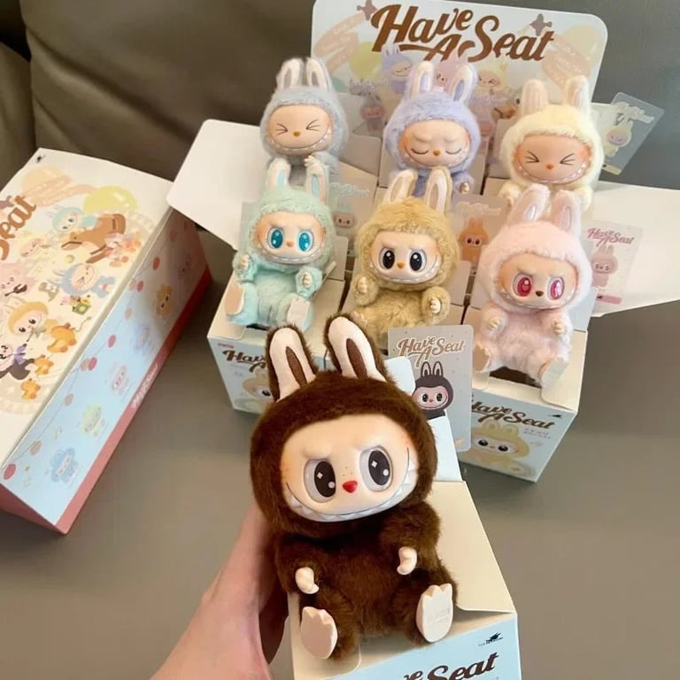 The Have a Seat collection brings the iconic Labubu figure in plush form with a vinyl face and a variety of expressions and colours. Each figure in this series sits in a cute pose, giving it a distinctive character and serving as a small companion on a shelf, a desk, or as a stylish accessory for a backpack. Blind box means that the exact design is a surprise until unboxing – in the series you will find, for example, variants with closed eyes, a wide smile, or an adorably curious look. The plush material is soft and pleasant to touch, while the detailed vinyl face ensures a unique appearance for each doll.