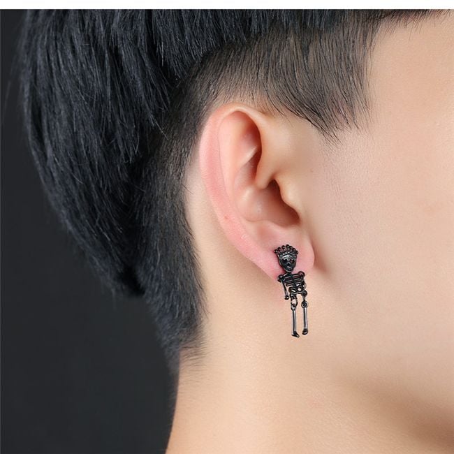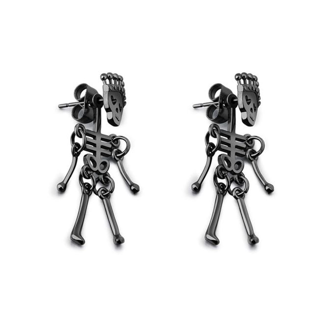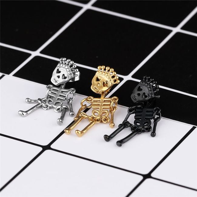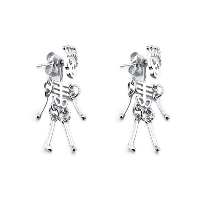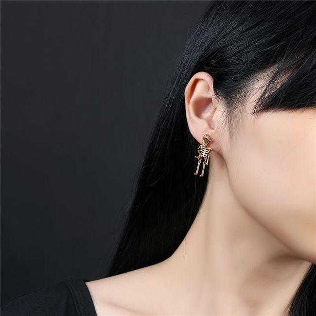 The earrings are shaped like a skeleton and are suitable for both men and women.
