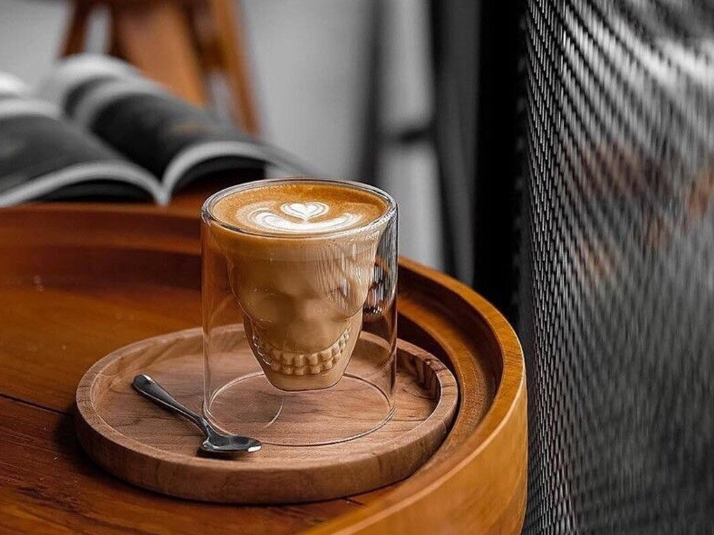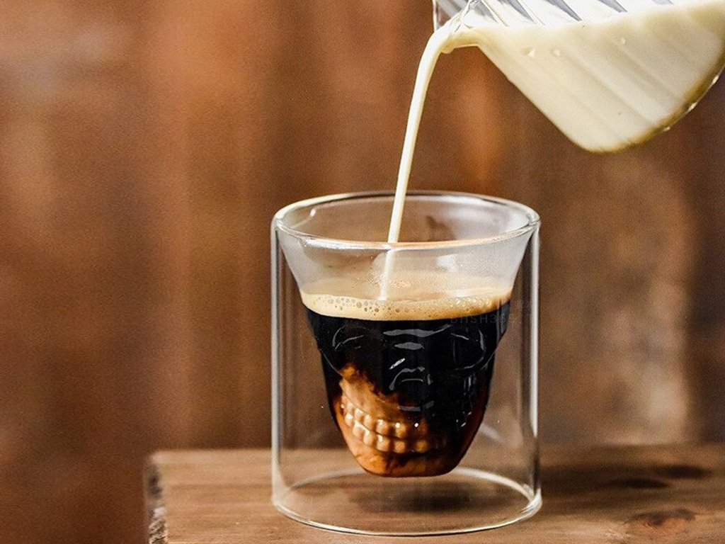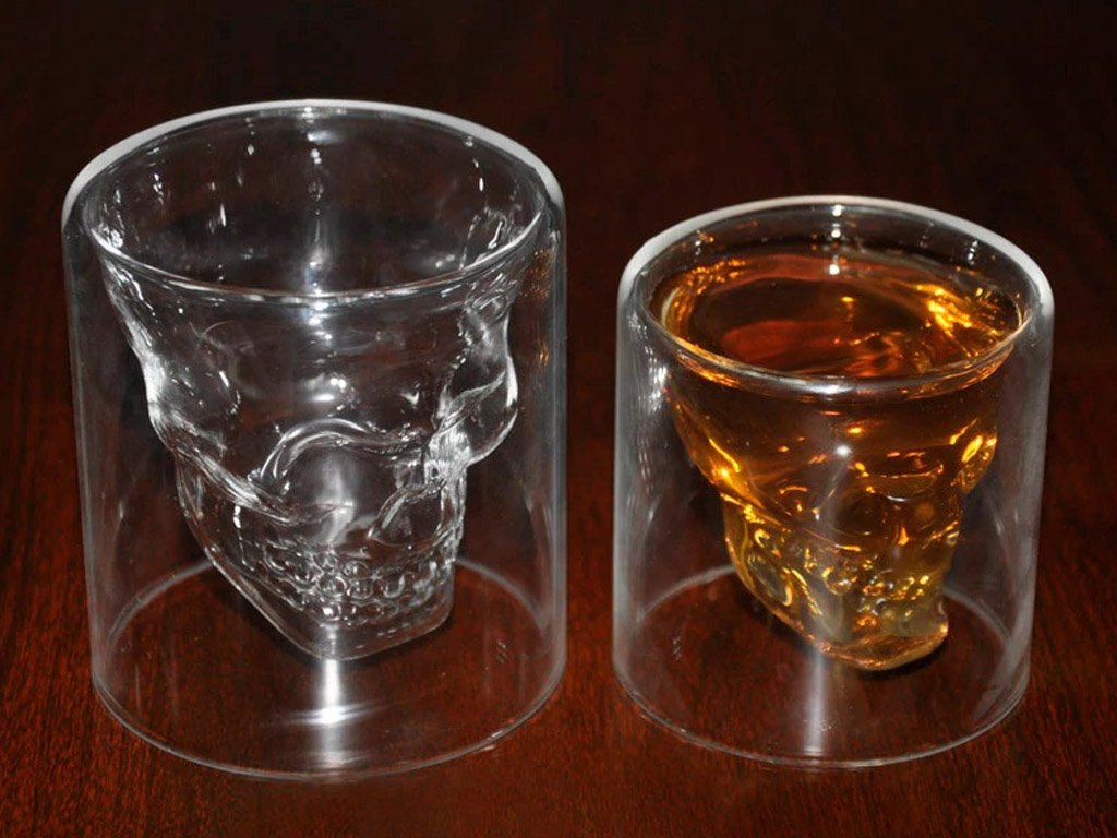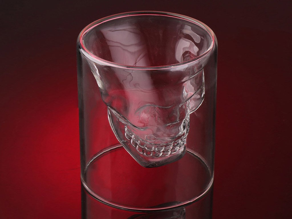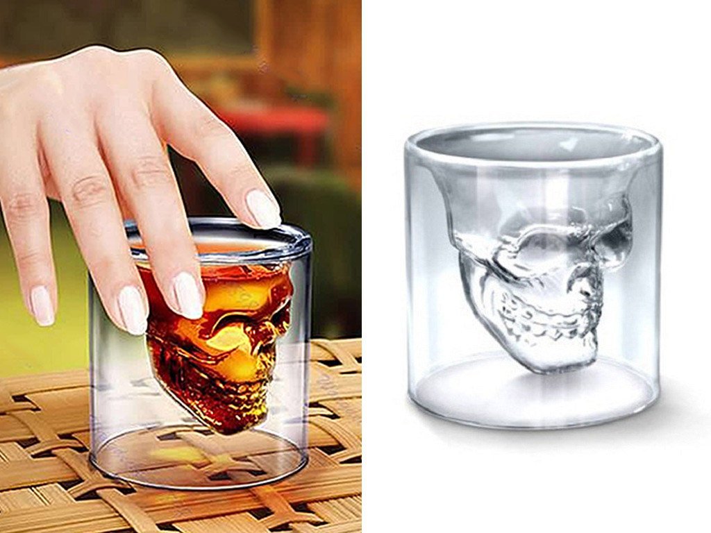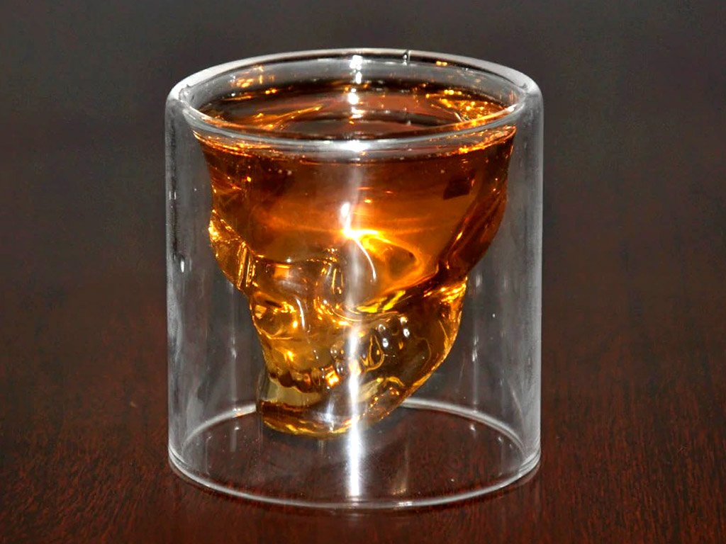 Original glass for lovers of good drinks or for motorcyclists and rockers. An ideal glass for serving alcoholic beverages or coffee.