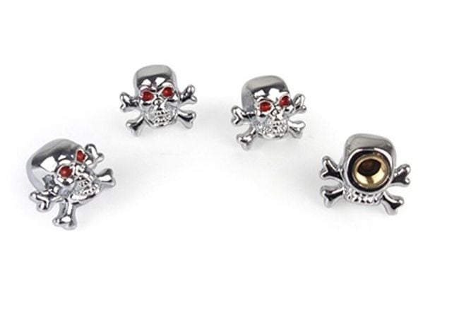 The valve caps look like skulls and are suitable for car, motorcycle or scooter tyres.