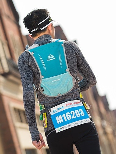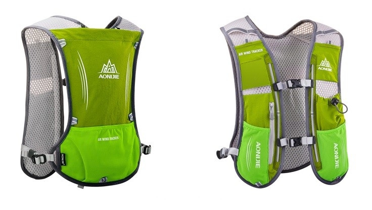 Running sports backpack with a 1.5 l bladder and a 500 ml bottle.