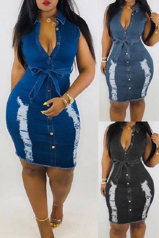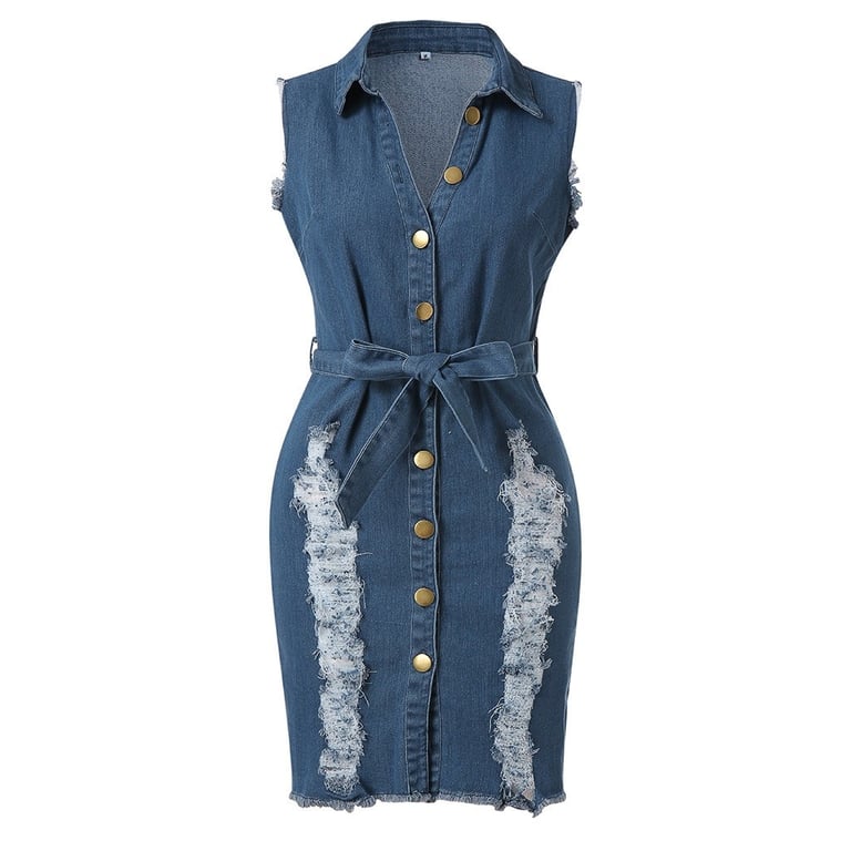 Stylish women's dress with a denim look.