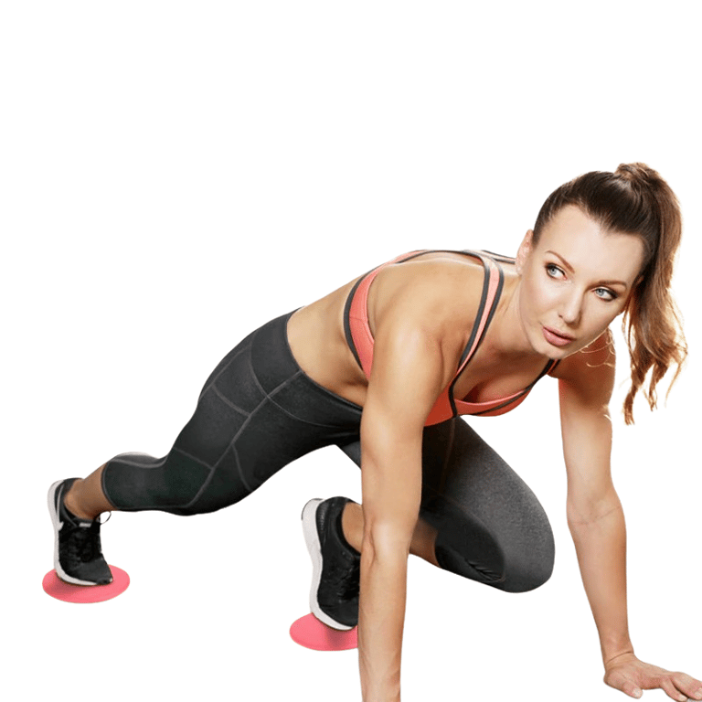 Sliding discs that work on both carpet and floor. They are used for full body strengthening. They primarily strengthen the core and abdominal muscles, as well as thighs, legs, and glutes. They are lightweight and portable. They improve balance and flexibility.