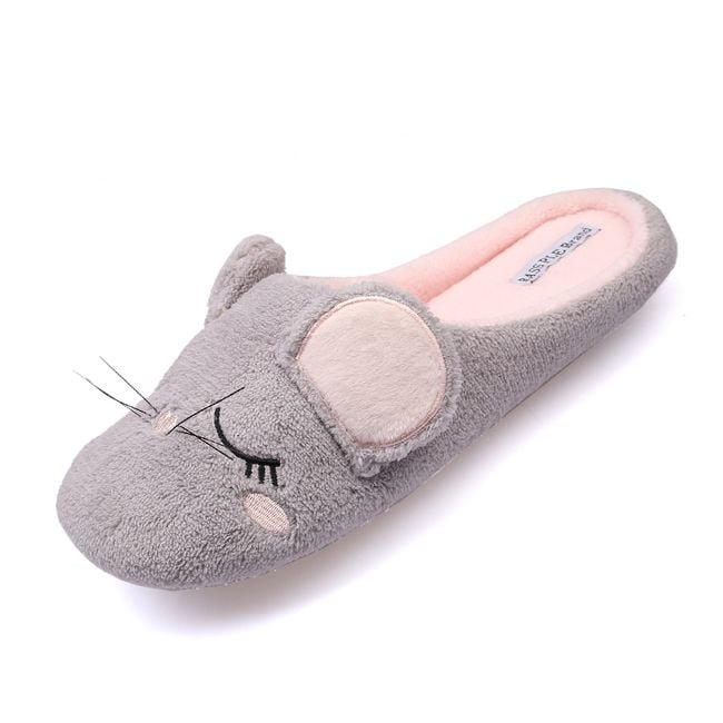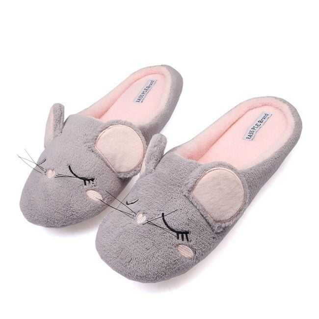 Mouse-shaped slippers serve as an interesting addition to the home.