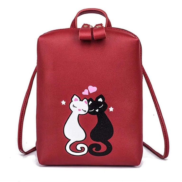 Stylish backpack that keeps everything you might need for short trips at hand. Featuring a cat print.