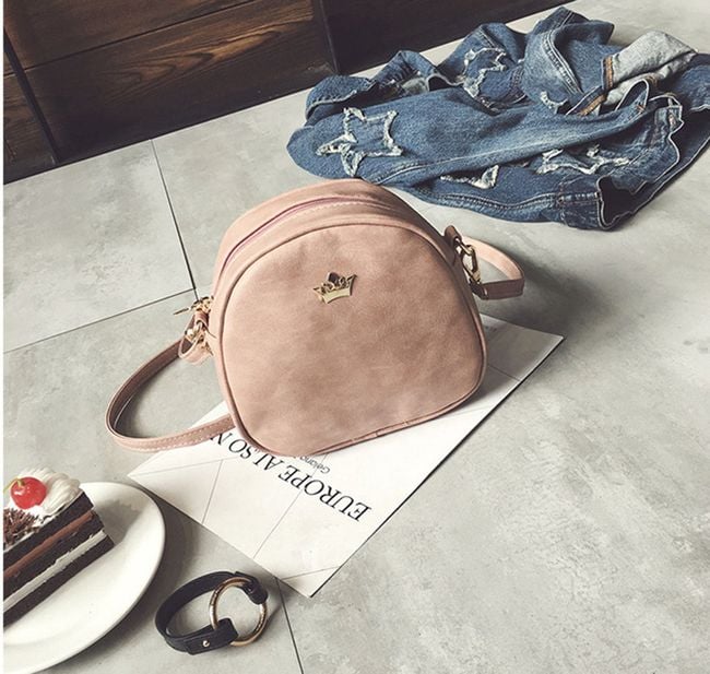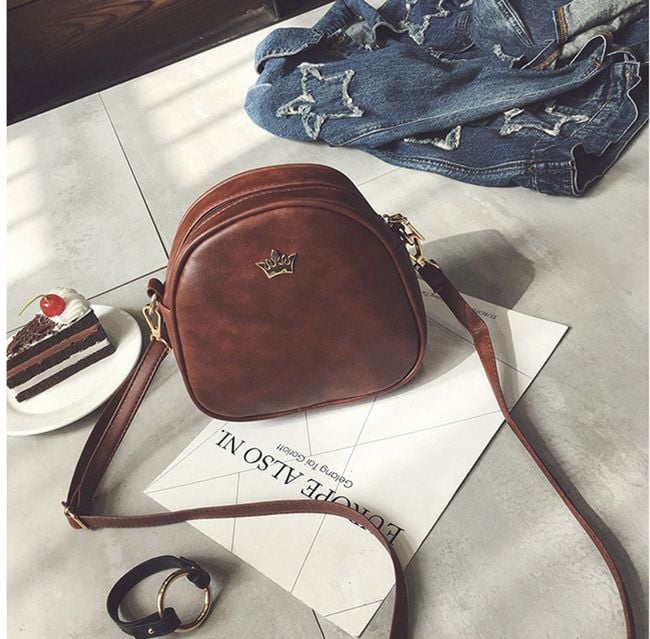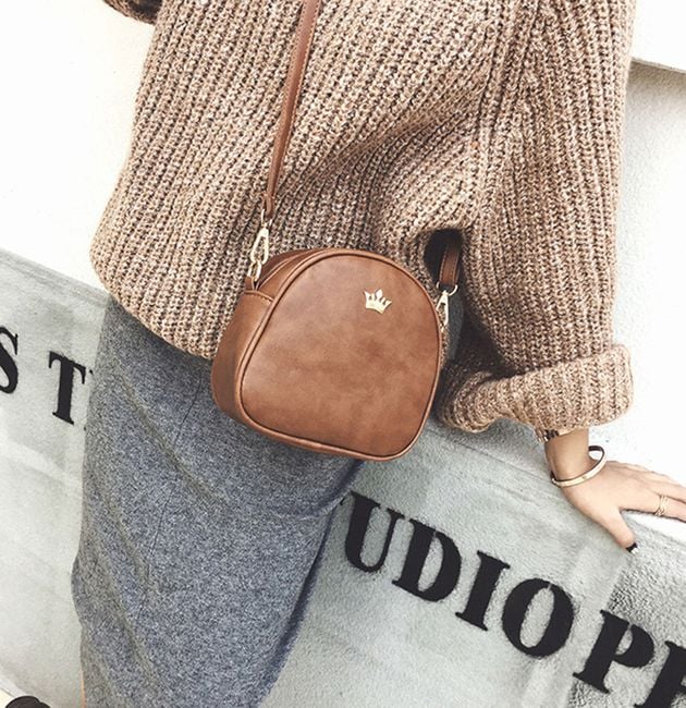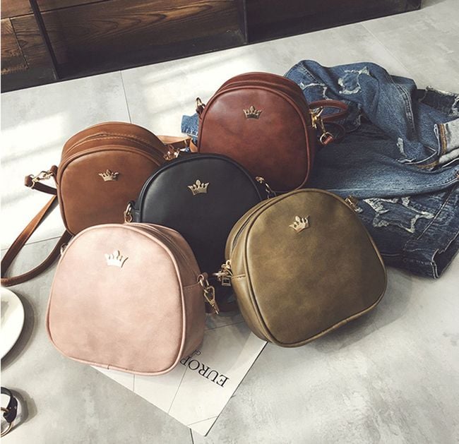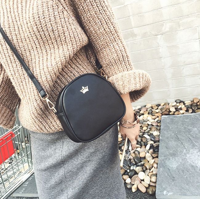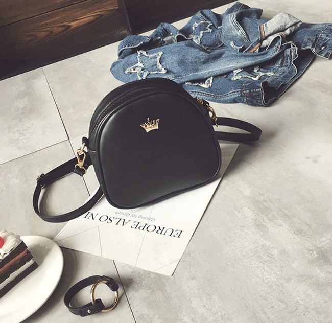 Practical smaller-sized handbag adorned with a gold-coloured metal crown. You can choose from 6 colour variants.