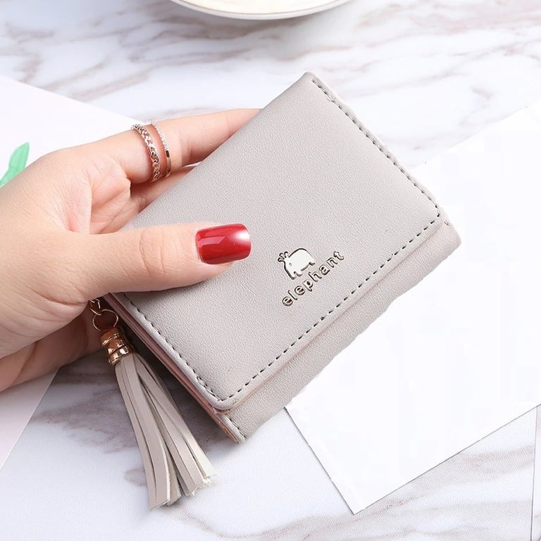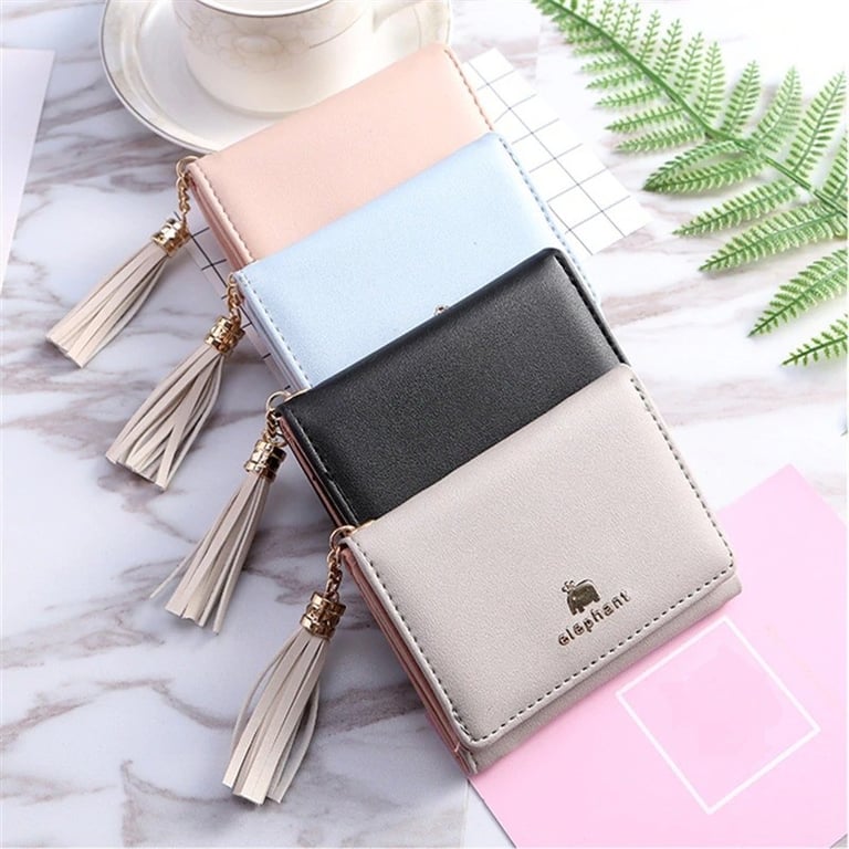 Small women's leather wallet with tassel