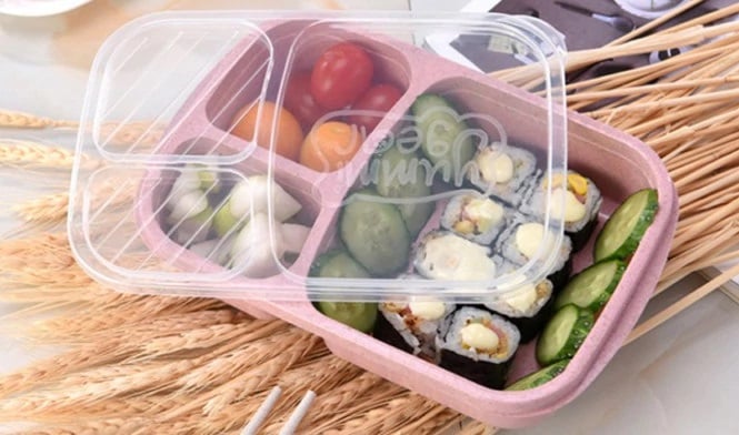 This snack box is made from wheat straw and is very practical.
