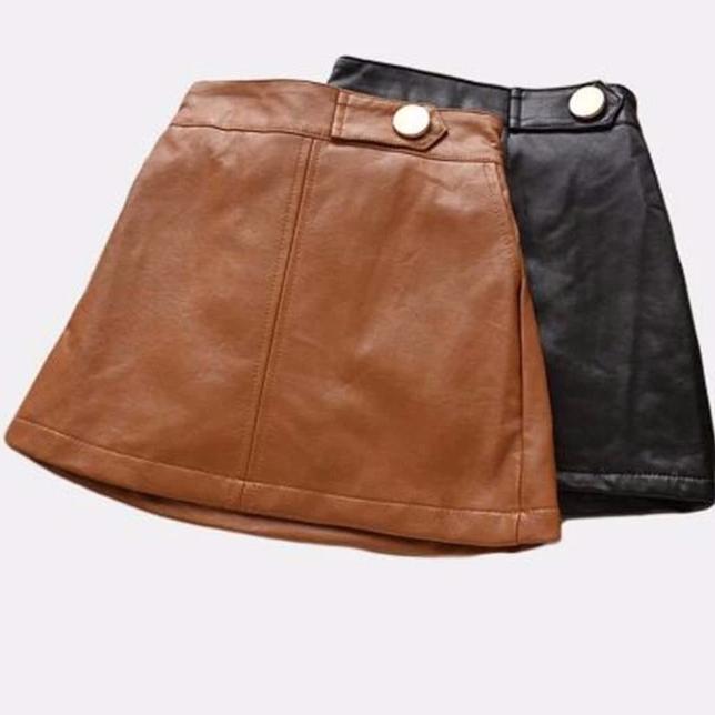 Girls' skirt made of faux leather with a decorative button. The product is offered in two basic colours for you to choose from.