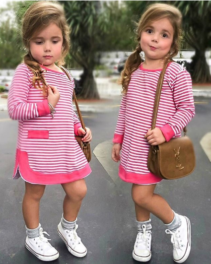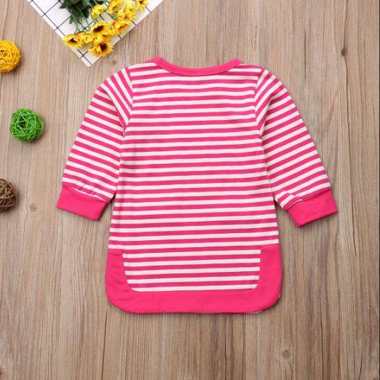 Social pink children's dress with stripes