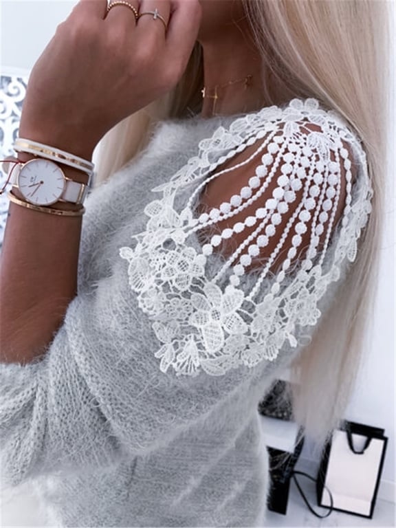 Soft pink knitted women's sweater with shoulder cut-outs.