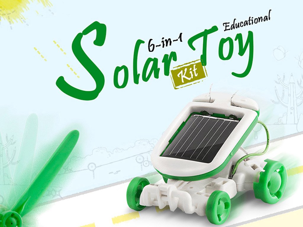 Solarbot 6in1 construction kit for children powered by solar energy. Build one of 6 possible robots that move on land and water – the individual robots are powered by a solar cell. The Solarbot solar robot is a unique construction kit from which you can assemble various toys.