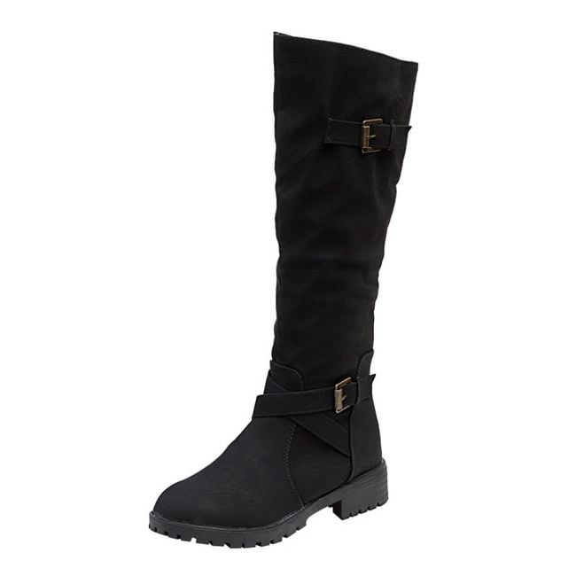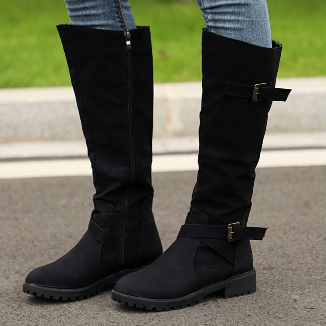 Available in three colours that can be matched with most outfits. The boots are solid-coloured, adorned with straps, and can be paired with jeans or a skirt.