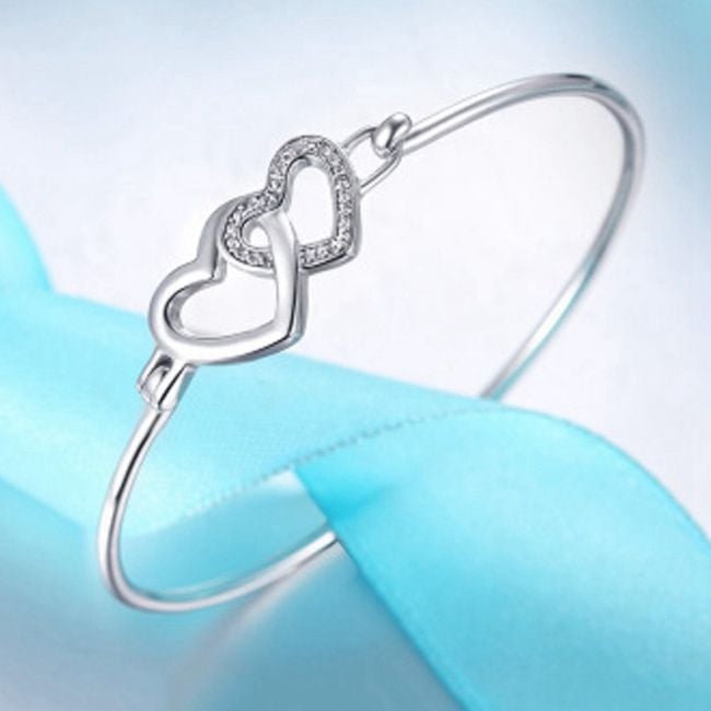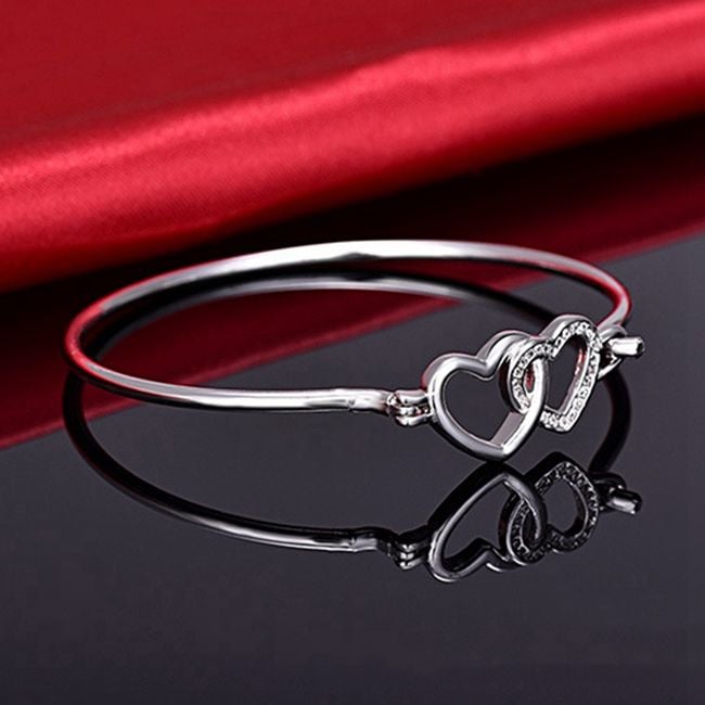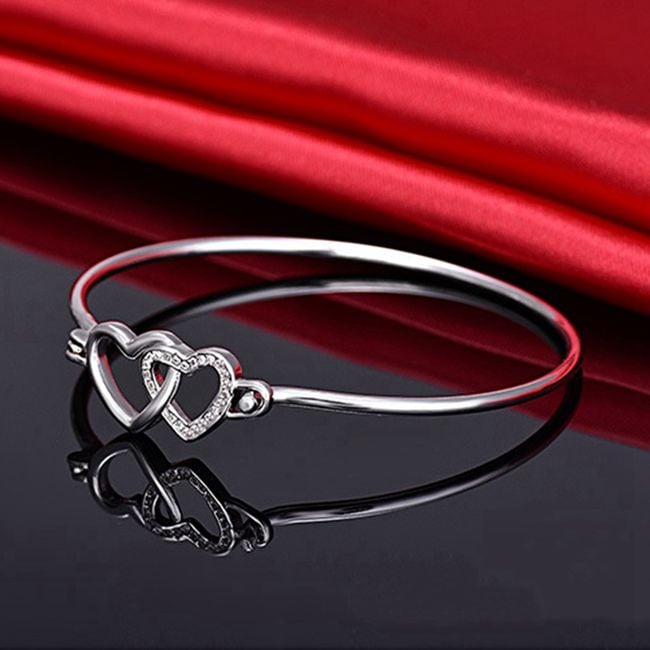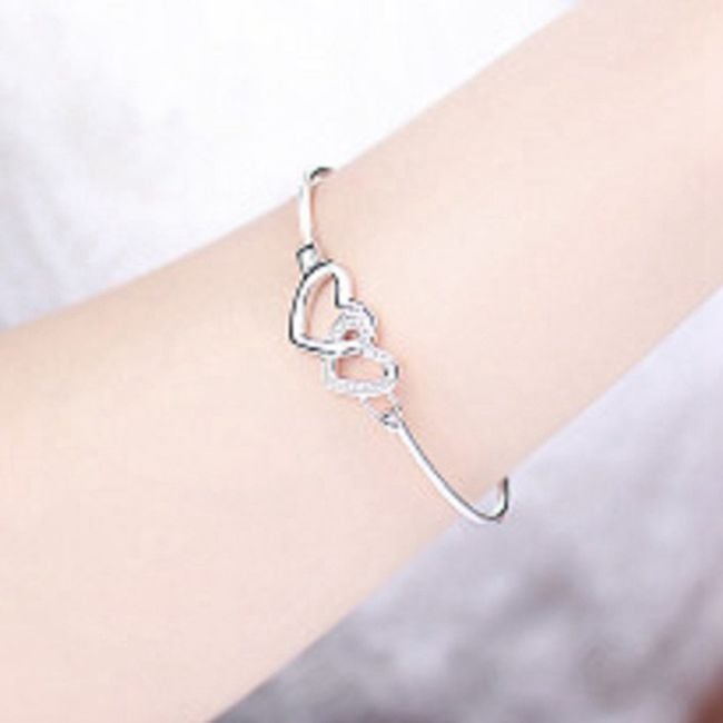 Women's delicate bracelet with hearts suitable for everyday wear. Available in silver colour.