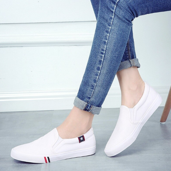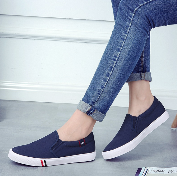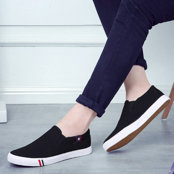 Solid colour basic slip-ons with a patch.